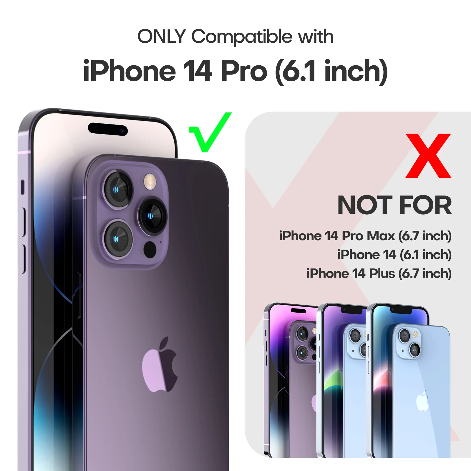 | Compatible Phone Models | ✔️iPhone 14 Pro 6.1inch ❌iPhone 14 ❌iPhone 14 Plus ❌iPhone 14 Pro Max |